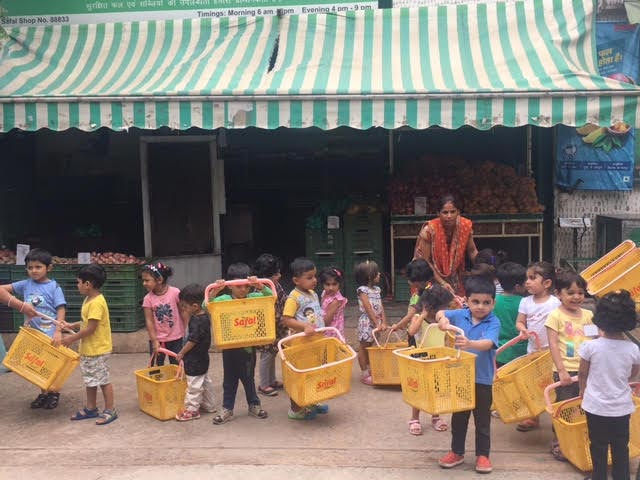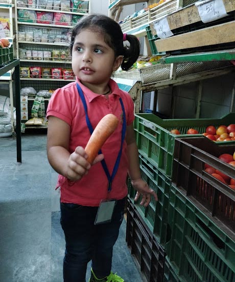 Children visited the nearest mother dairy outlet to get an experience of the market and to recapitulate the concept of fruits and vegetables.